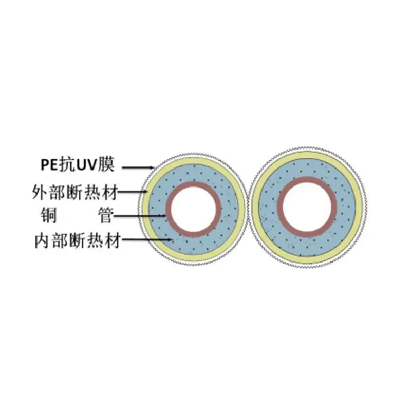 The insulated copper tube consists of two parts: the inner tube and the outer insulation layer. The inner tube is made of copper, responsible for transporting the refrigerant. The outer insulation layer usually uses insulation materials such as polyethylene (PE) and foamed rubber and plastic. These materials have excellent thermal insulation properties, which can effectively prevent heat transfer, reduce the heat exchange between the refrigerant inside the tube and the external environment, minimize the loss of cooling capacity or heat, and improve the energy efficiency of the system.